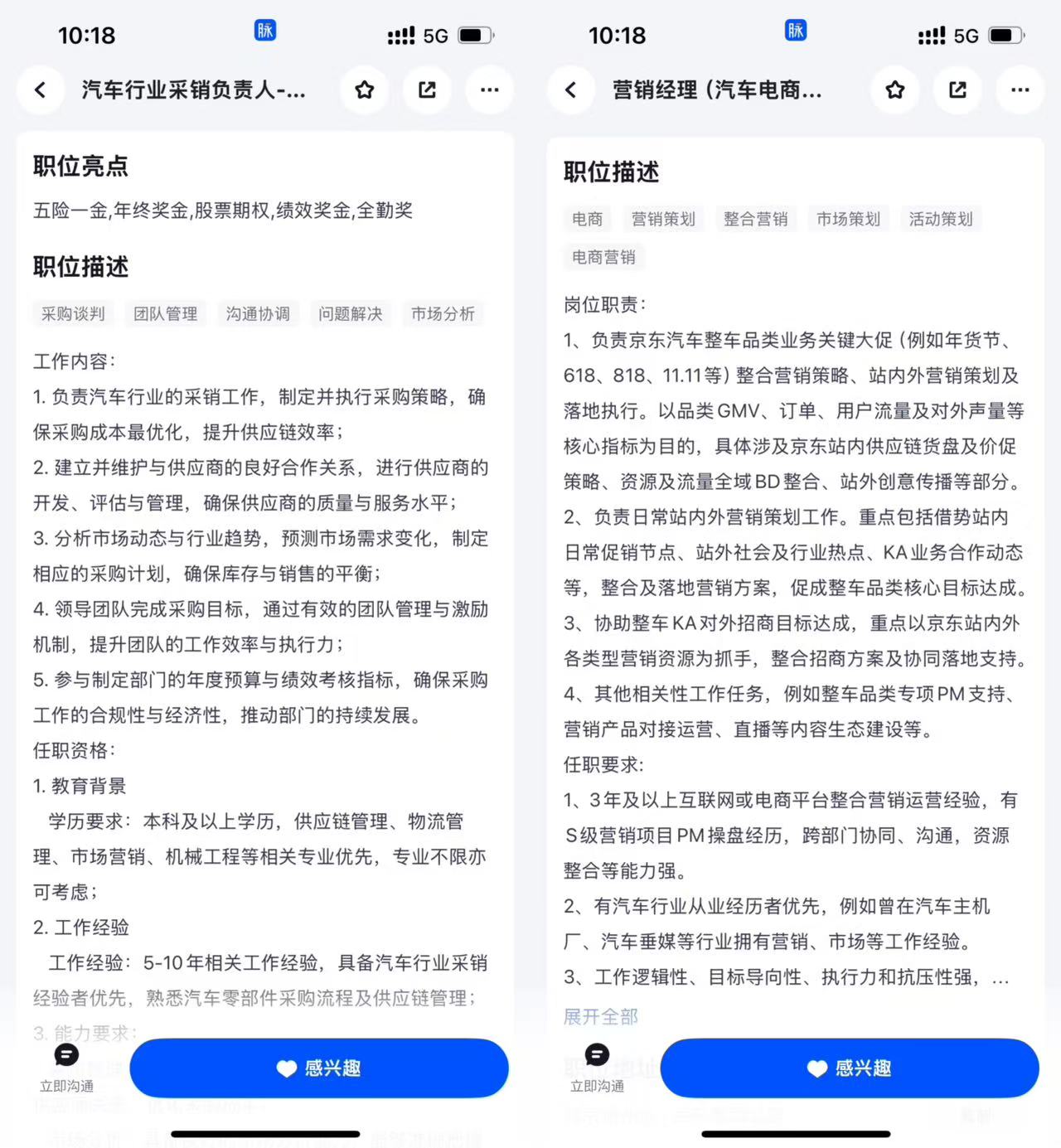 京东在脉脉上发布的汽车相关岗位也证实了这一点。目前华利配资,京东在脉脉上发布的汽车相关岗位多为各类采销、营销经理、门店招商、行业销售、零售事业部算法等岗位。其中汽车零售事业部算法岗年薪可达123万元(35k-65k*19薪),汽车行业采销负责人年薪超过110万元(45k-70k*16薪)。从岗位要求来看,“营销经理”对有汽车行业从业经历的候选人优先录取”;“汽车行业采销负责人”需要具备5-10年相关经验,熟悉汽车零部件采购流程及供应链管理。