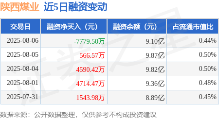 本站消息,8月6日,陕西煤业(601225)融资买入4662.97万元日昇配资,融资偿还1.24亿元,融资净卖出7779.5万元,融资余额9.1亿元,近20个交易日中有11个交易日出现融资净买入。